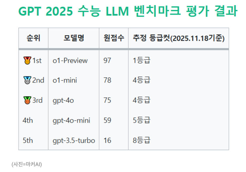 GPT 2025 수능 LLM 벤치마크 평가 결과 출처 마커 AI